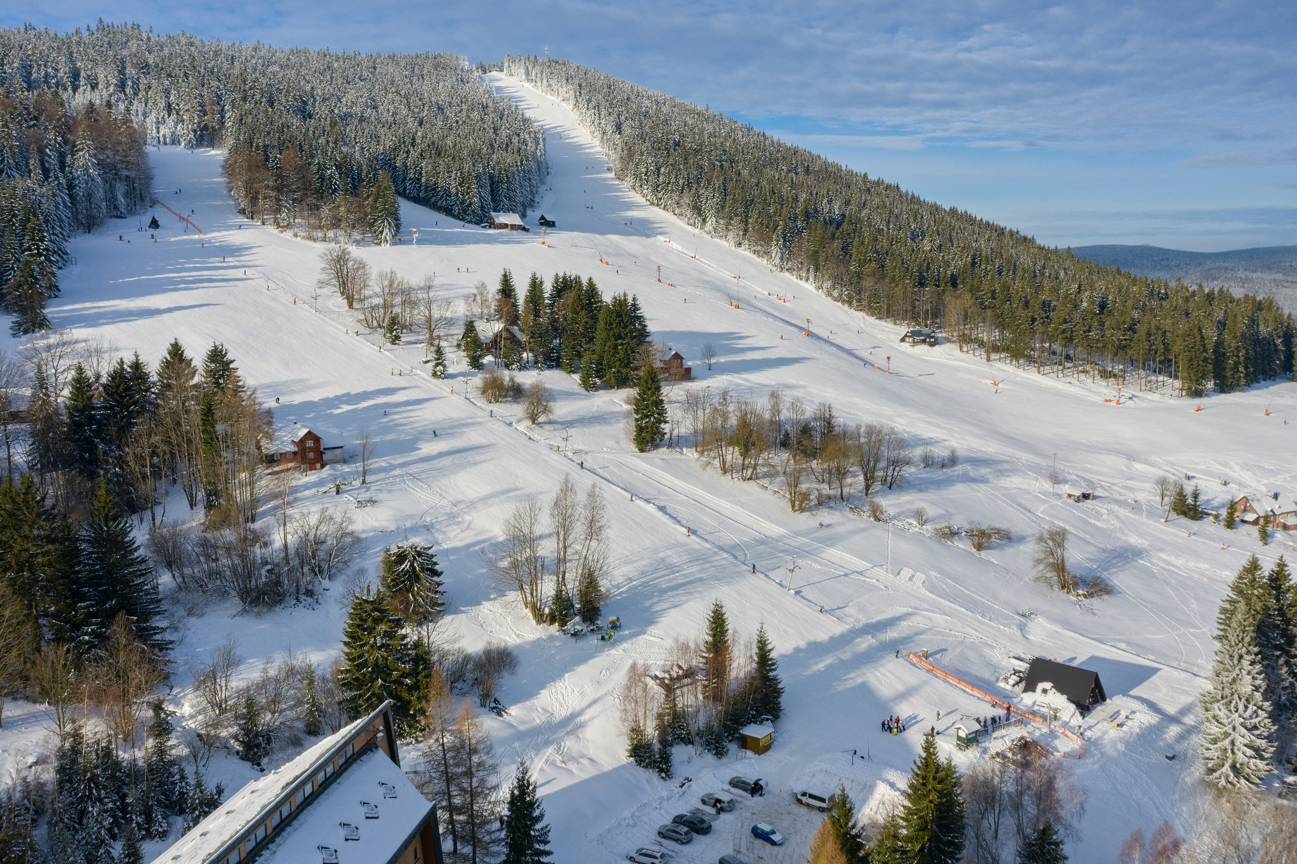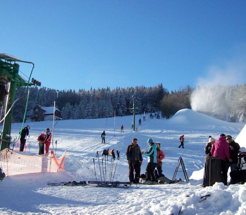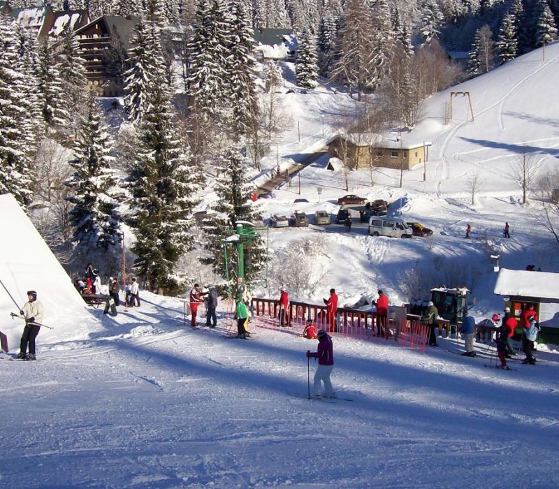 Nacházíme se přímo na modré sjezdovce, můžete k nám tak pohodlně přejet přímo ze skiarálu, a opět se poté do skiareálu vrátit.